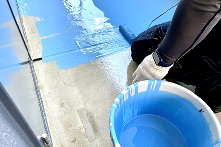 防水層は紫外線に弱いため、塗装後は上からトップコートで保護します。
